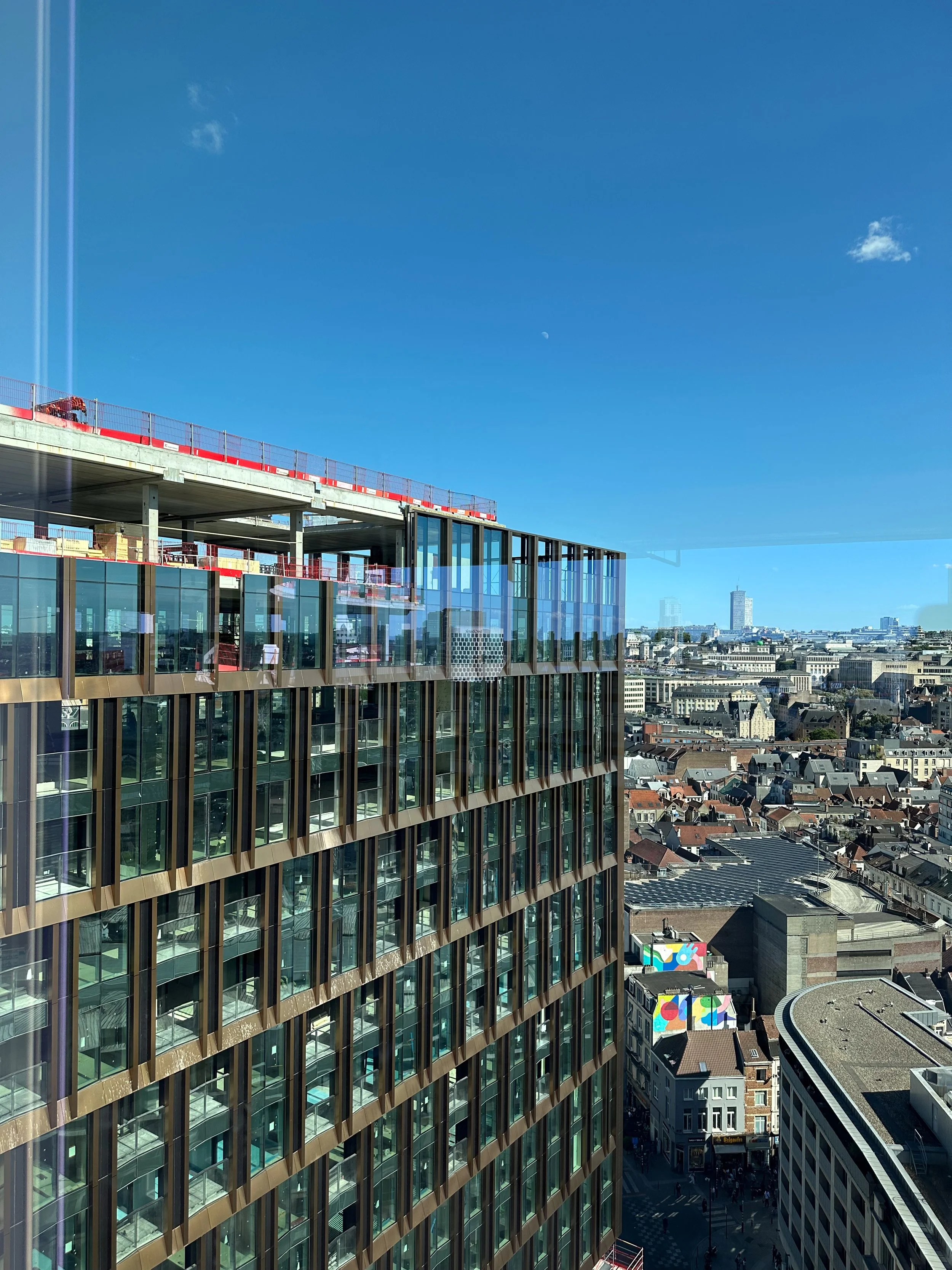 This building was formerly known as the Centre Monnaie. The structure and iconic shape of the building are being preserved, but it is receiving a completely new look. With a total area of 62,000 square meters, it is now being entirely reimagined. The renovation is being carried out by Binst Architects and Snøhetta, with a strong focus on sustainability, ecology, and recyclability. What remains the same is the recognizable shape of the building. What is changing is what happens inside. Where it used to be purely an office building, it will now include commercial and recreational spaces, as well as residential units.